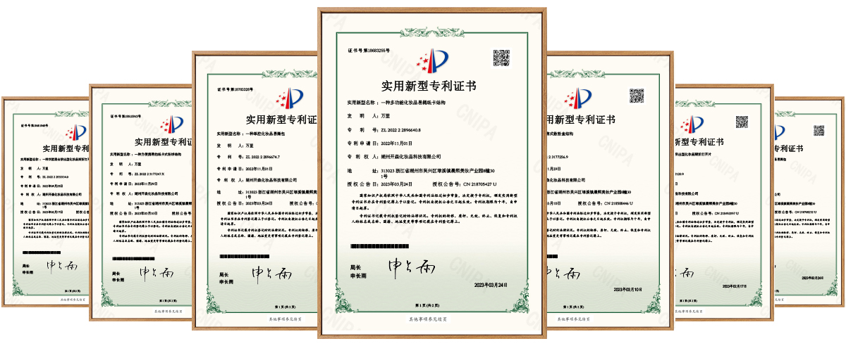 經(jīng)過多年的研發(fā)創(chuàng)新,湖州開森現(xiàn)擁有【一種便攜式散粉盒結(jié)構(gòu)】、【一種多功能化妝品易揭紙卡結(jié)構(gòu)】、【一種方便攜帶的紙卡式粉餅結(jié)構(gòu)】、【一種雙腔混合擠出型化妝品易撕包】、【一種雙腔掰折擠出型化妝品掰折打開片】、【一種單腔掰折擠出型化妝品掰折打開片證書】等多種專利,可以根據(jù)客戶的不同需求,進(jìn)行深度創(chuàng)新,滿足市場(chǎng)和產(chǎn)品日益更新的需求。